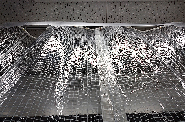 温度管理・湿度管理が必要な測定室のシャッター部に、夏場は結露が発生するため、ビニールカーテンを使用した対策をしました。