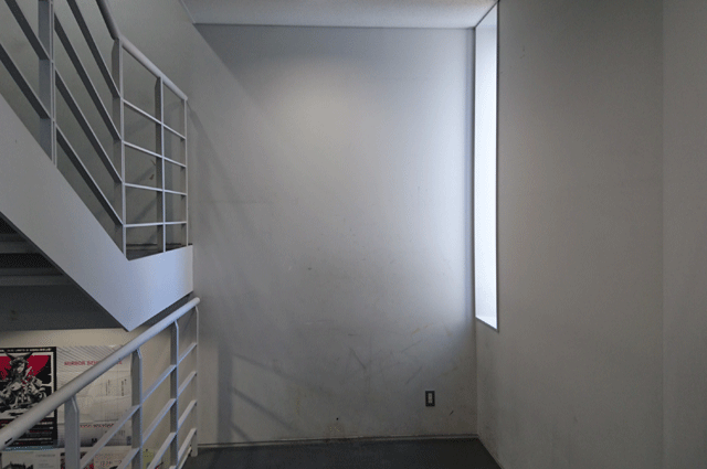 廊下部分で生徒の作品を撮影するために、壁面に不燃ロールスクリーンを設置しました。