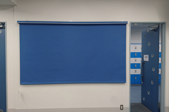 このように、スポーツ施設内への総合設置が可能です。生地は全て、防炎仕様となっています。