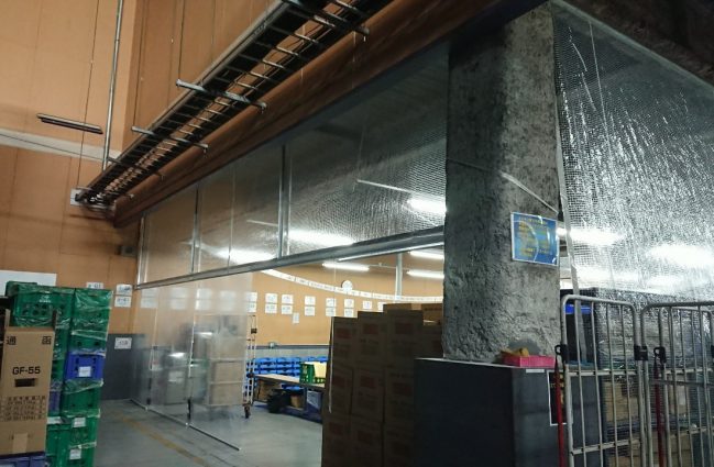 - 冷暖房効率化のため工場の作業スペースを間仕切りに